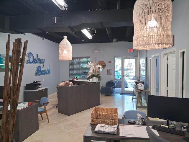 For Lease 1925 SF Warehouse / Showroom facing Congress Avenue, corner of Lake Ida. Unit has one 12 X 14 Roll up and 21ft ceiling height. 3 phase electric, fire sprinklers and impact glass windows and doors.
